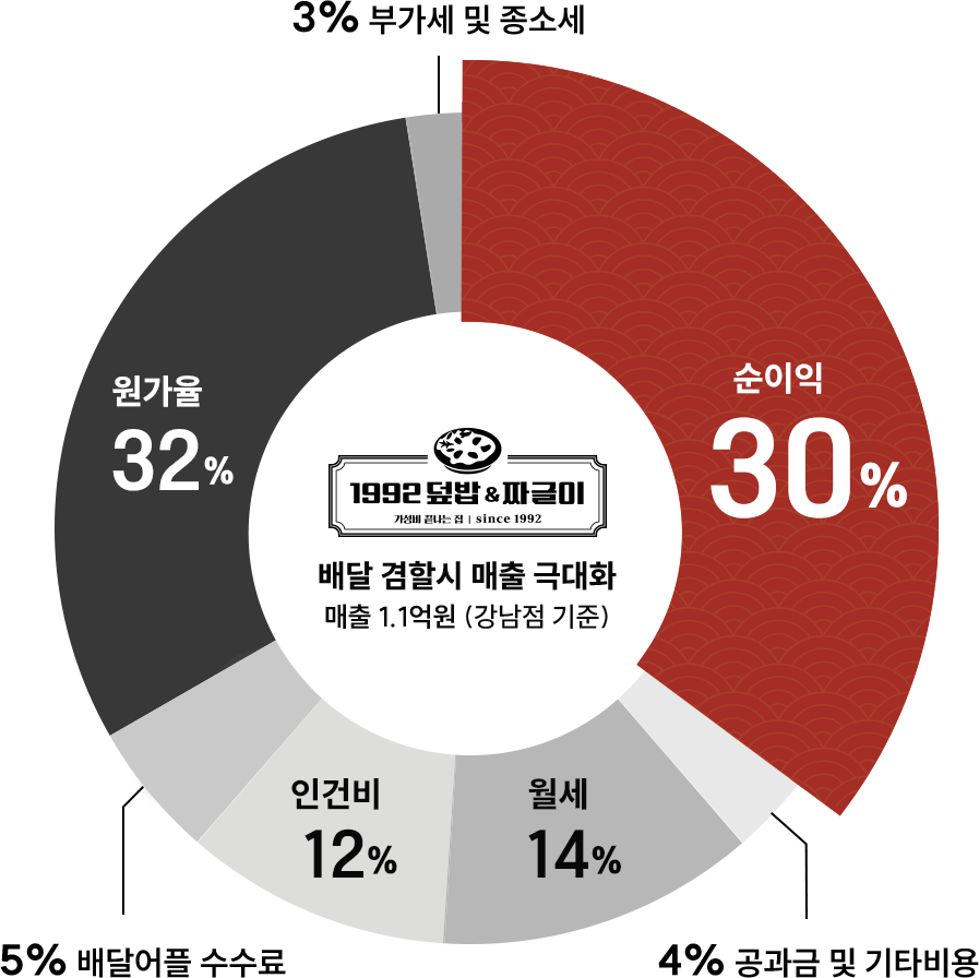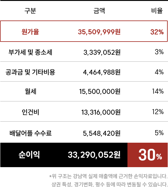 위 구조는 강남역 실제 매출액에 근거한 손익자료입니다.